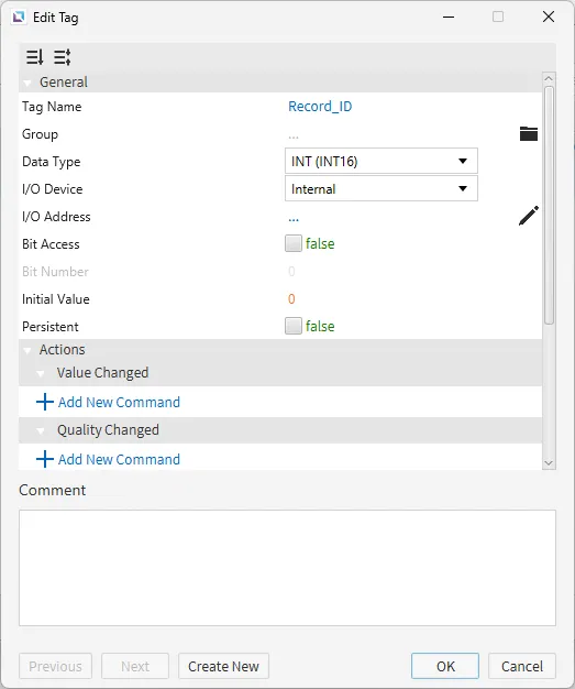 Section titled “Tag Configuration”- Create the following tags:
