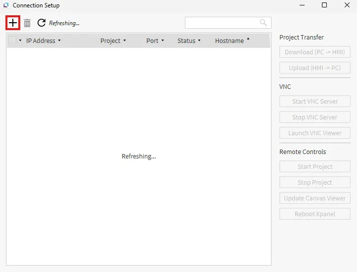 - Use the VNC/RDP or Remote Control options on the right side of the Connection Setup window to manage or view the HMI remotely once the connection is established.