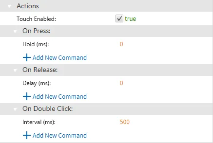 Section titled “Actions”If the Waveform Graph is pressed, released, or double-clicked, it can execute a script or command. These interactions are configured in the Actions tab under the On Press, On Release, and On Double Click sections.