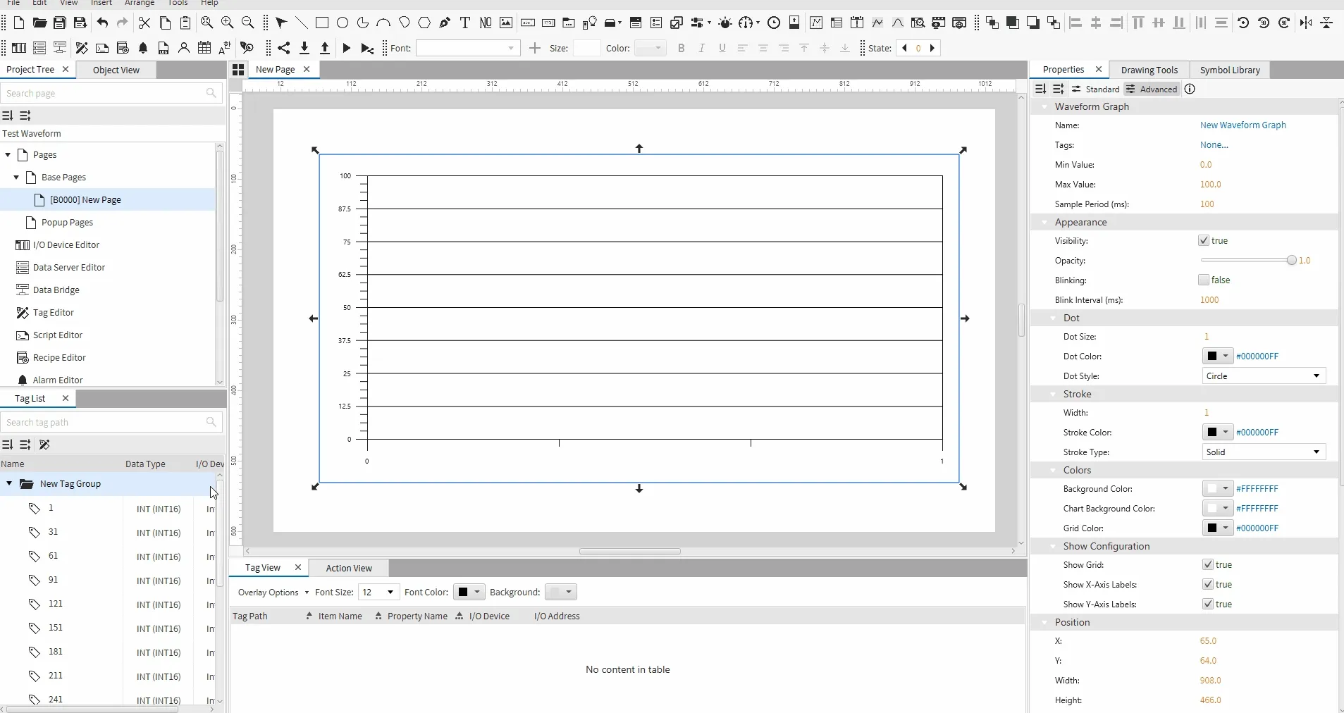 - Smart Binding: A tag group can also be bound to the graph using drag-and-drop. Simply drag the desired tag group from the Tag List and drop it onto the Waveform Graph.