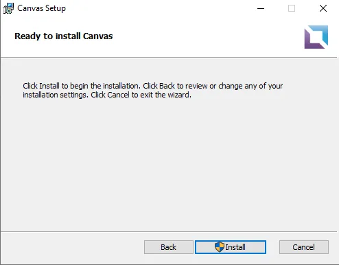 - Now, the CIMON Canvas Setup Wizard is ready to install CIMON Canvas. Click Install to begin the installation.