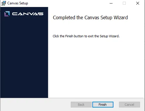 - Launch Canvas.exe to check if the installation was successful. Canvas should launch and show the Startup Screen. Users can select a project to continue editing if there are any saved projects from previous installations.