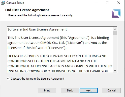 - Click Next to continue with the CIMON Canvas Setup Wizard installation process.