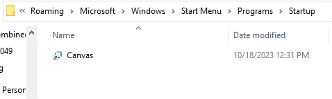 - These options will open the Startup folder. Insert the shortcut icon for CIMON Canvas into the Startup folder.