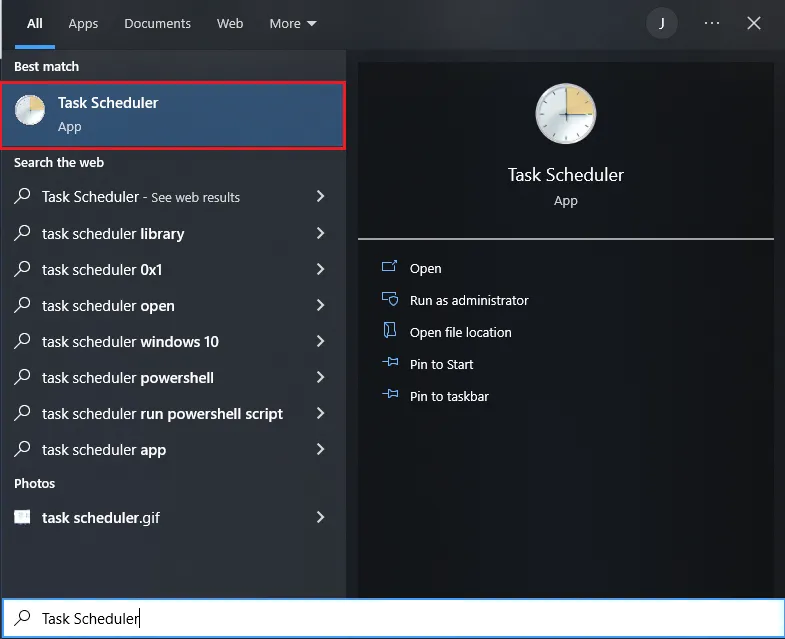 - Or search “Task Scheduler” in the Windows Search bar and click Task Scheduler.