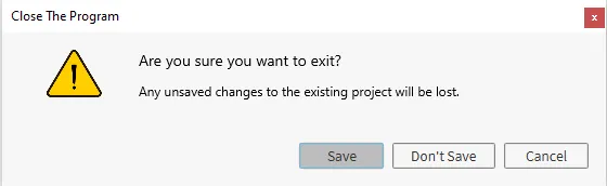 If changes to the currently opened project are not saved, the dialog box displayed to the right will appear: