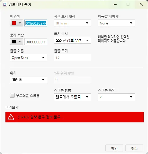 경보 배너 속성