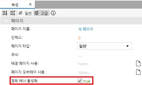 페이지 속성창에서 경보 배너 활성화를 클릭하여 현재 페이지에서 경보 배너가 스크롤되도록 설정할 수 있습니다.