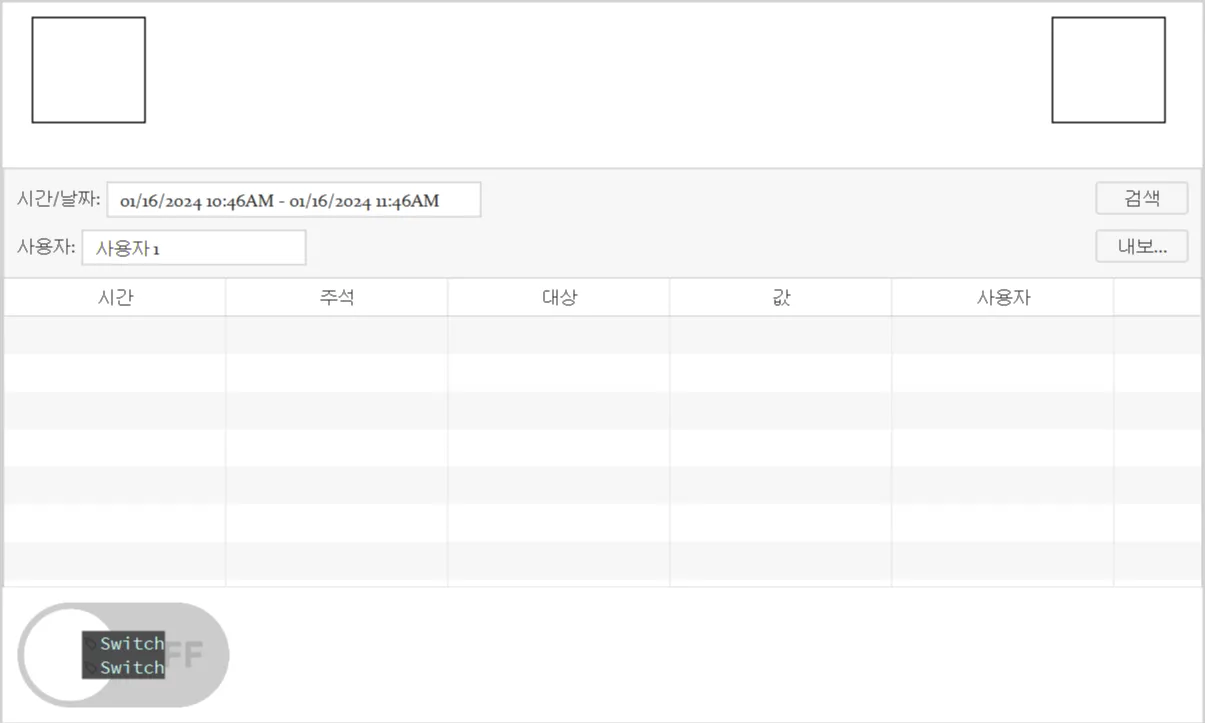 섹션 제목: “감사 로그 테이블”- [삽입] > **[감사 로그 테이블]**으로 이동하거나 툴바에서 감사 로그 테이블 삽입 아이콘을 클릭하여 감사 로그 테이블을 배치합니다. 선택 후, 감사 로그 테이블을 클릭하고 위로 드래그합니다.