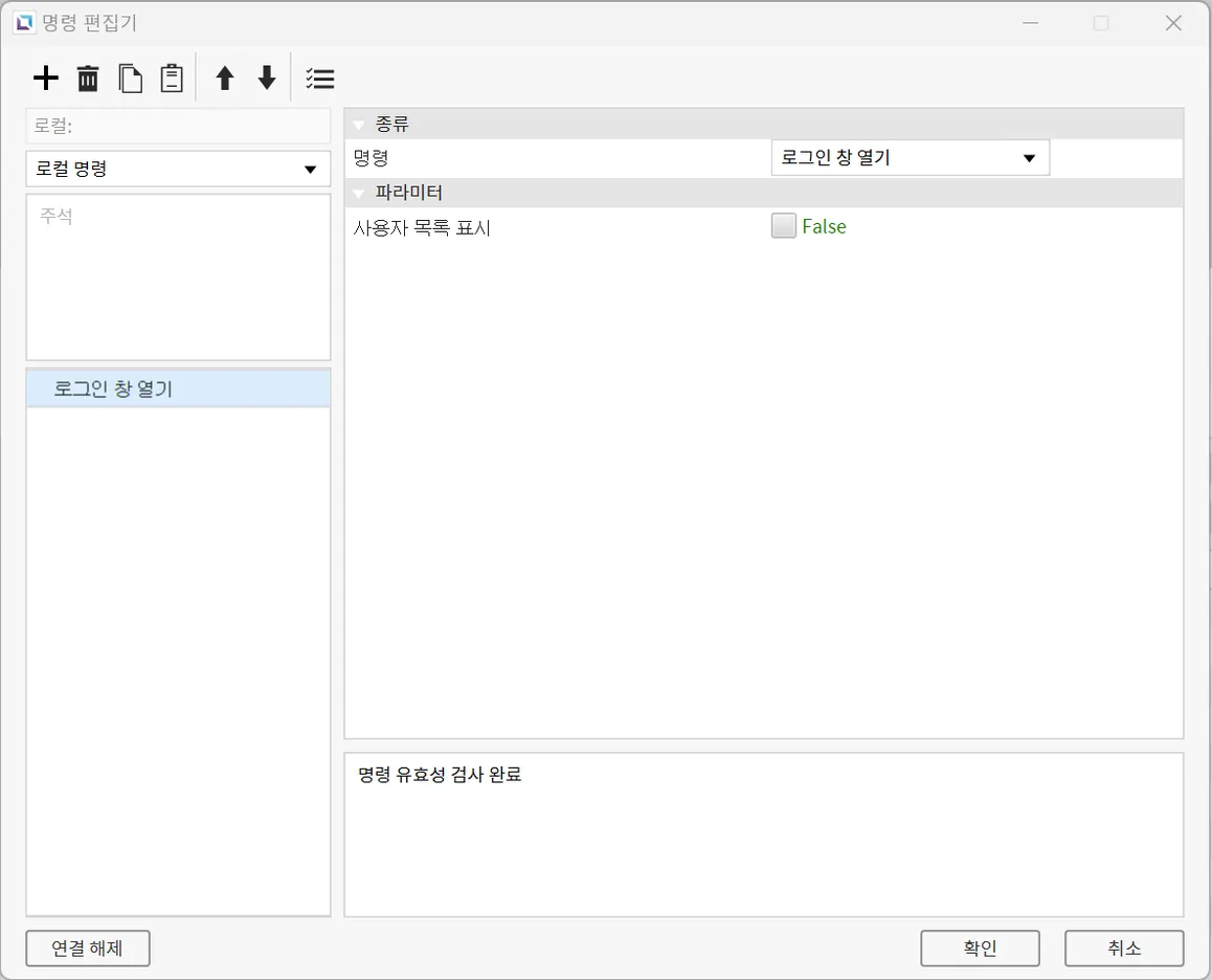 왼쪽 사각형 오브젝트의 터치 동작에는 누를 때 명령을 추가하여 오브젝트 터치 시 로그인 창이 열리도록 합니다.