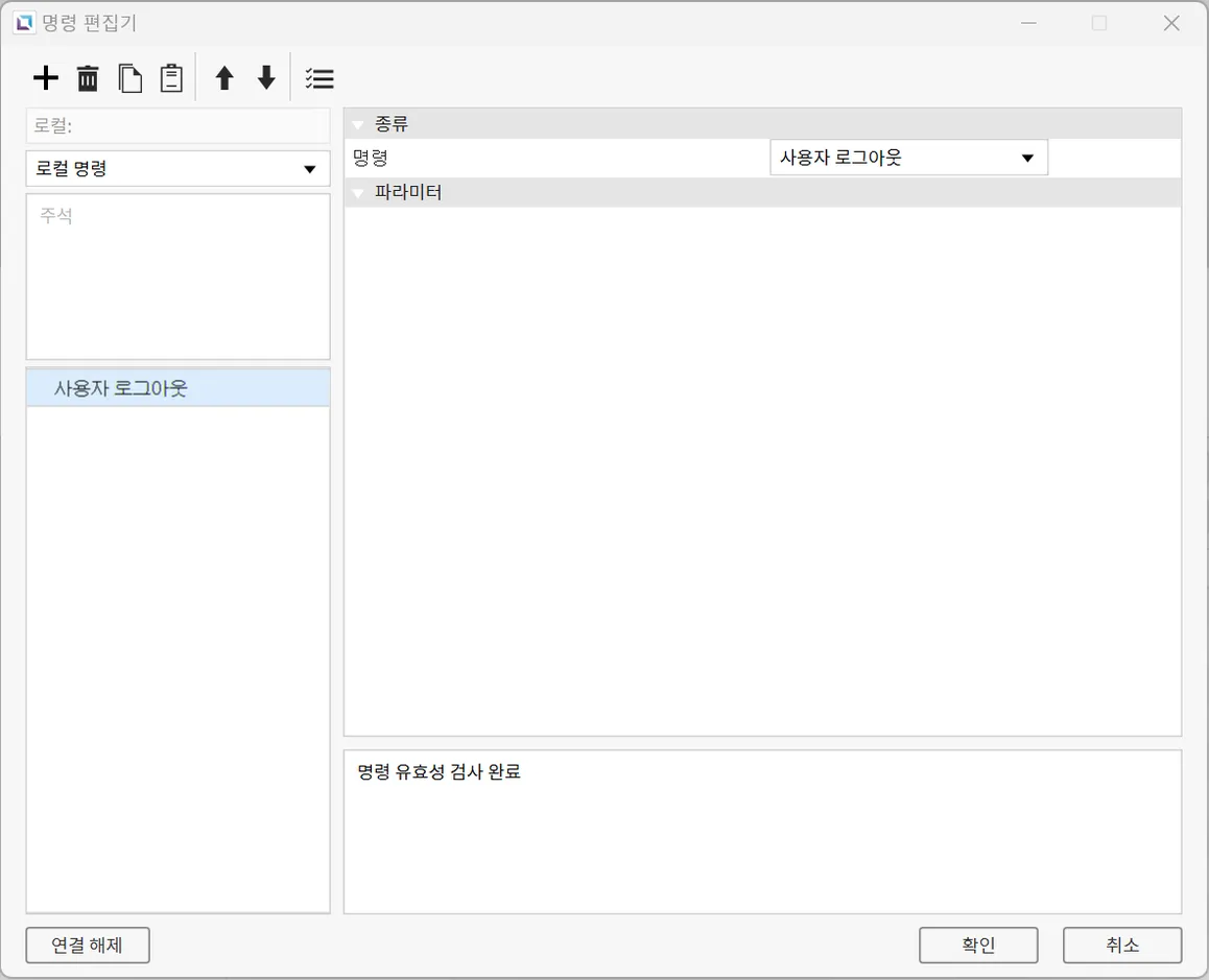 오른쪽 사각형 오브젝트의 터치 동작에는 누를 때 명령을 추가하여 오브젝트 터치 시 현재 로그인 된 계정으로부터 로그아웃 하도록 합니다.