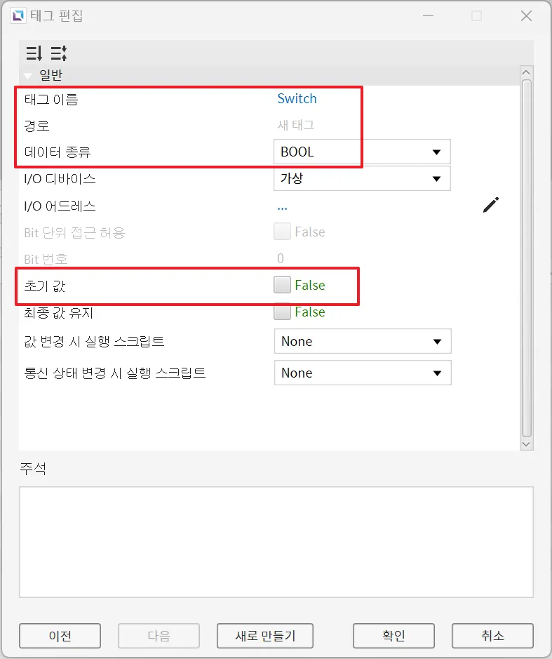 - 데이터 타입: BOOL