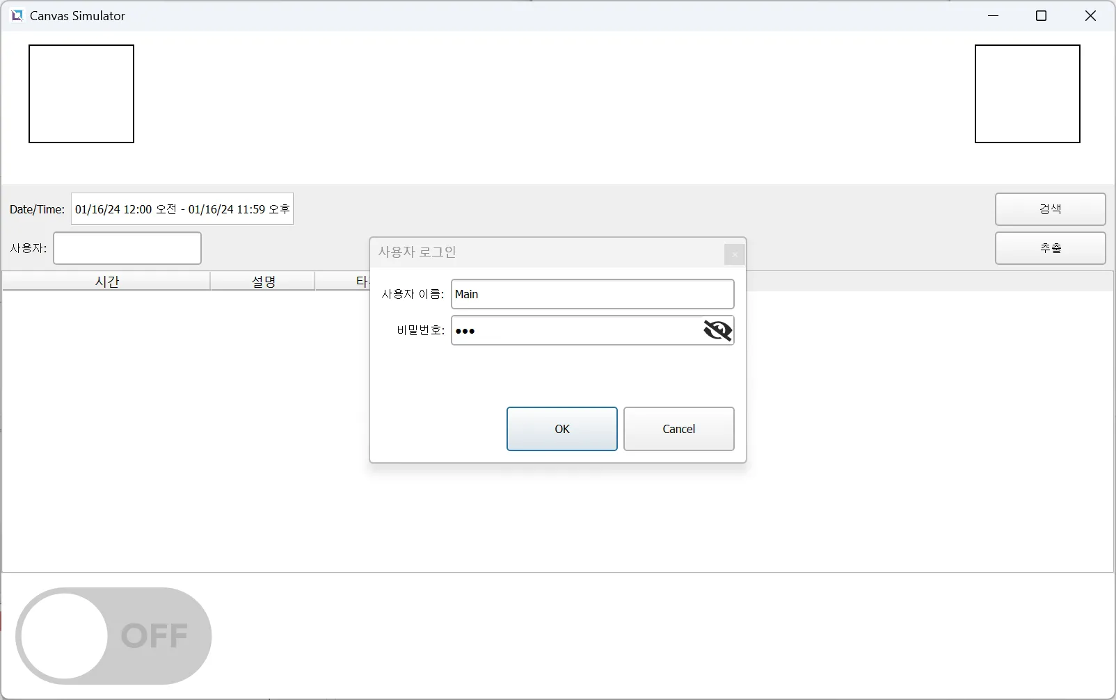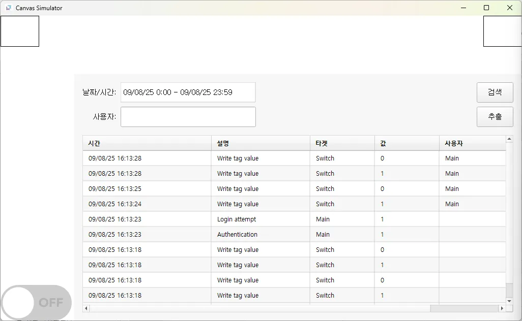섹션 제목: “프로젝트 실행”- [도구] > **[시뮬레이터 실행]**을 클릭하여 시뮬레이터를 실행합니다.