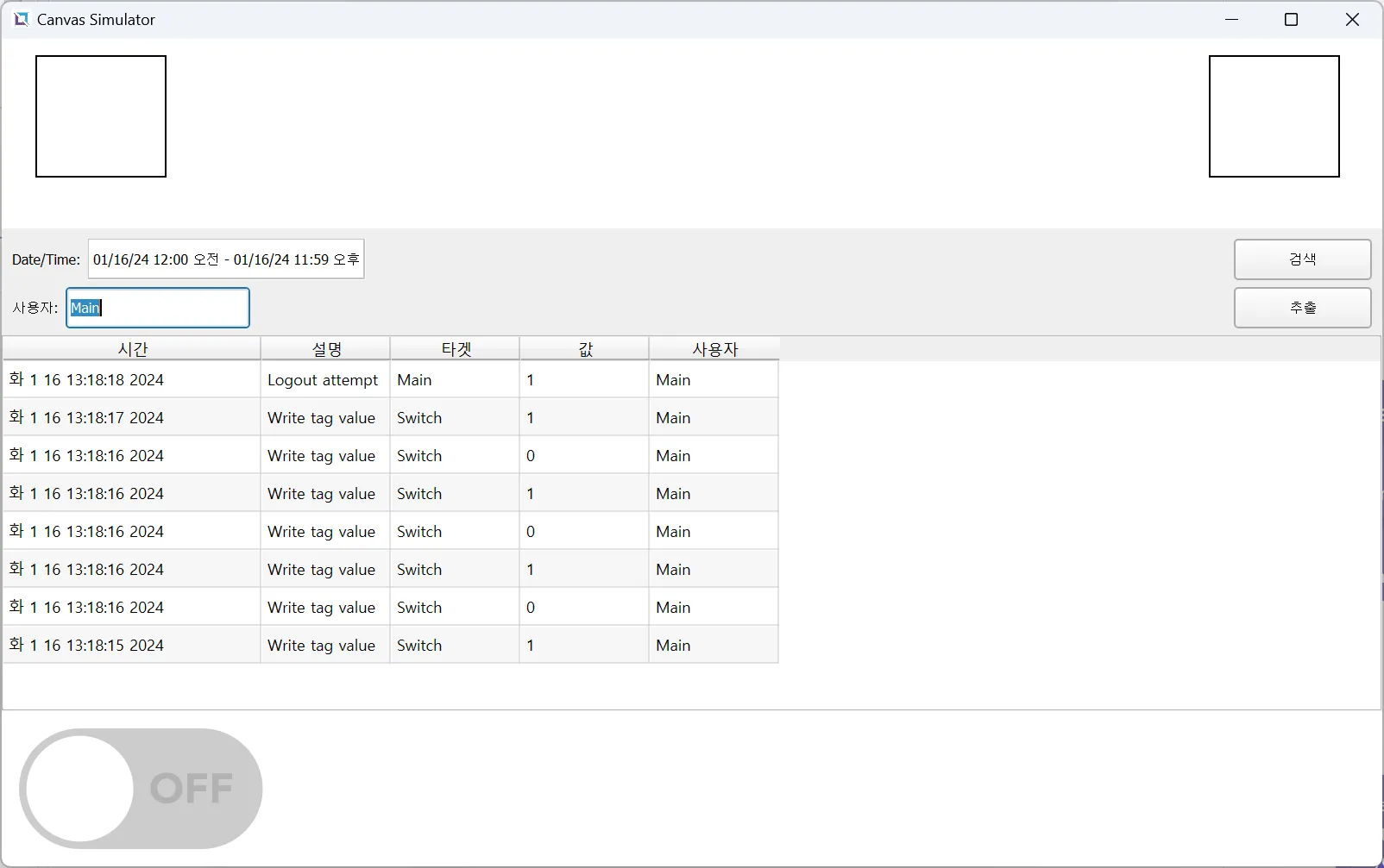 감사 로그 오브젝트의 사용자 영역에 Main을 입력한 다음 검색 버튼을 누릅니다.