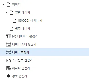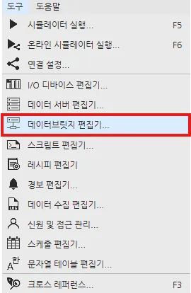 섹션 제목: “데이터브릿지 설정”- 도구 > 데이터브릿지 편집기 또는 툴바에서 데이터브릿지 편집기 열기를 선택하여 데이터브릿지 편집기를 엽니다.