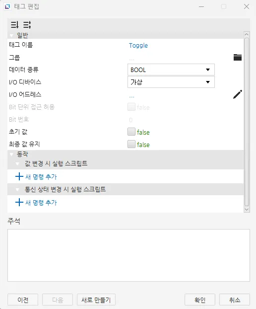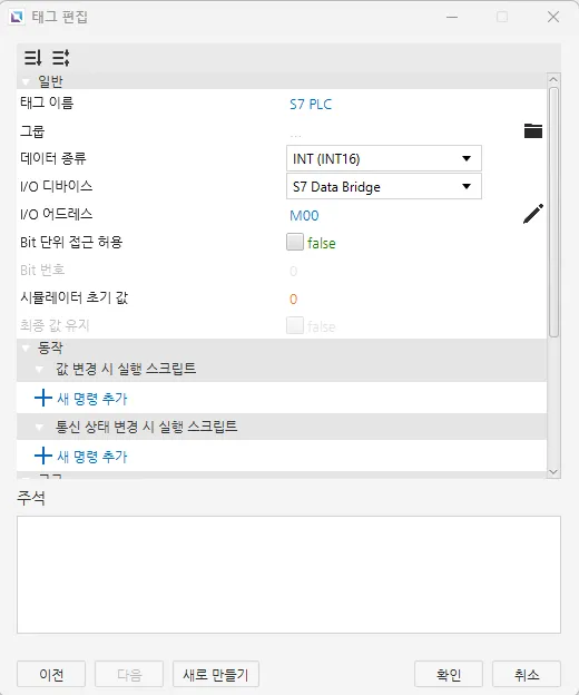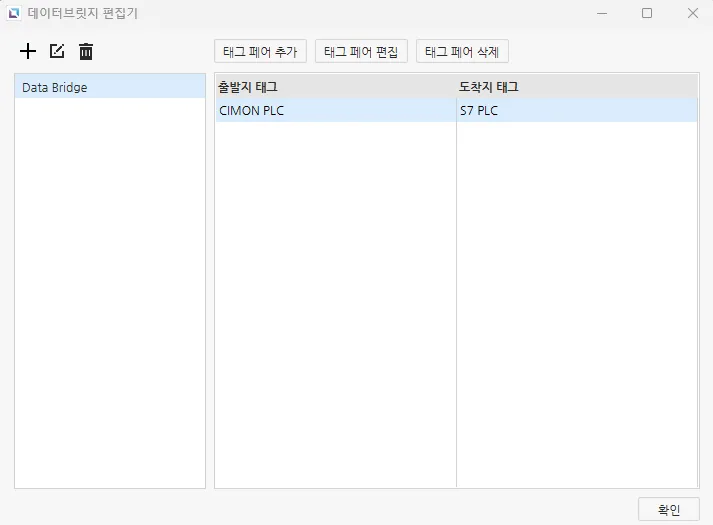 섹션 제목: “태그 설정”데이터 태그는 장치 간 전송되는 값을 저장하는 변수 역할을 합니다. 각 PLC에 이 태그들을 할당하여, 한 장치에서 데이터를 읽고 다른 장치에 쓸 수 있도록 설정합니다.
