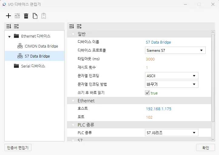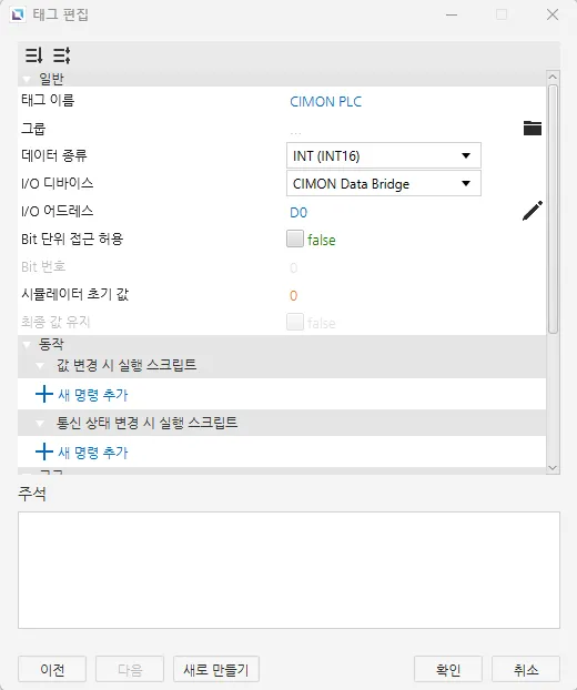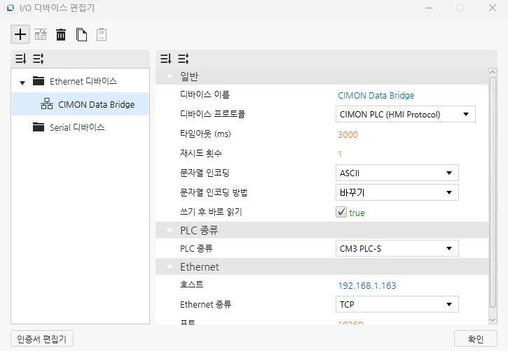 - 프로토콜: CIMON PLC (HMI Protocol)