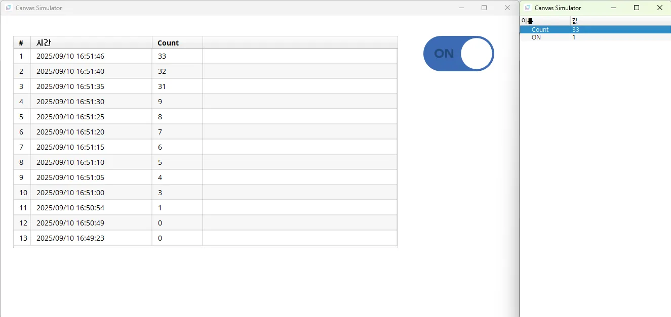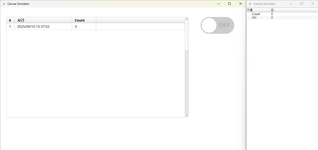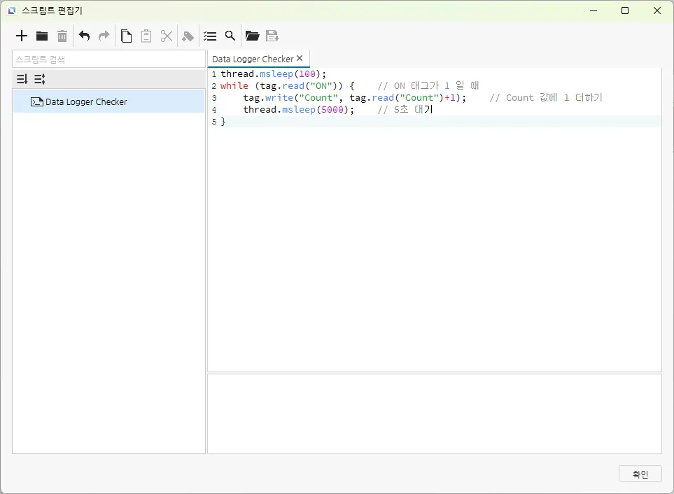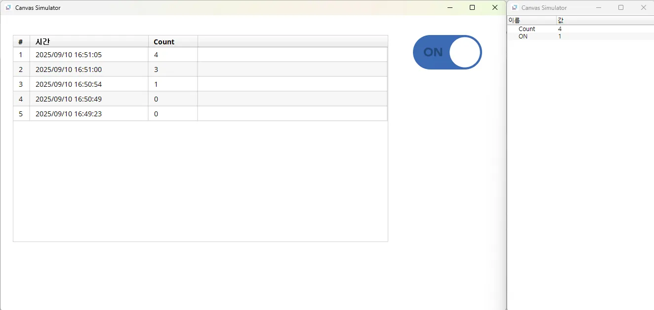 데이터 로그 테이블에는 5초마다 Count 태그에 적용된 변경 사항이 반영됩니다.