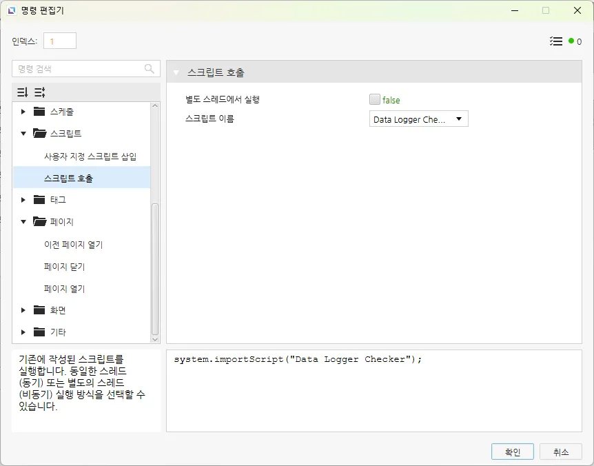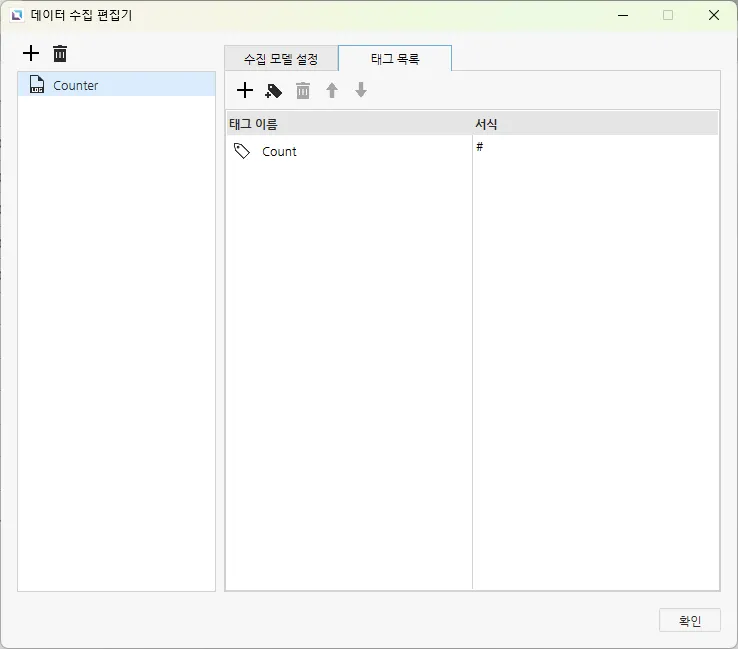 섹션 제목: “데이터 수집 모델 설정 1”- 도구 > 데이터 수집 편집기를 클릭하고 아래와 같은 데이터 수집 모델을 생성하세요. :