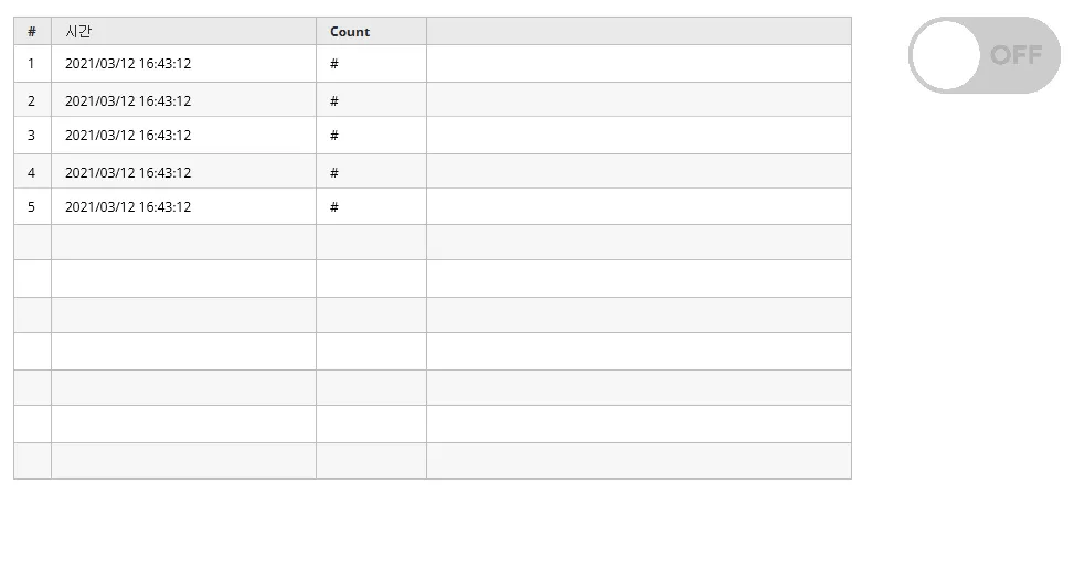 토글 버튼을 클릭해 on 상태로 전환합니다. Count 태그는 토글 버튼이 on 일 때 5초마다 업데이트됩니다.