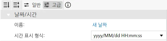 섹션 제목: “기본 속성”기본 속성을 통해 사용자는 오브젝트의 이름을 바꾸고 표시될 날짜/시간 형식을 구성할 수 있습니다.