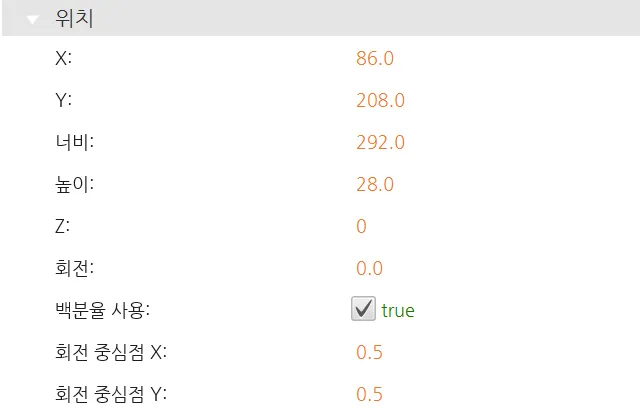 위치 섹션은 날짜/시간 오브젝트의 형태를 변경하거나 이동시키는 조정 가능한 속성을 제공합니다.