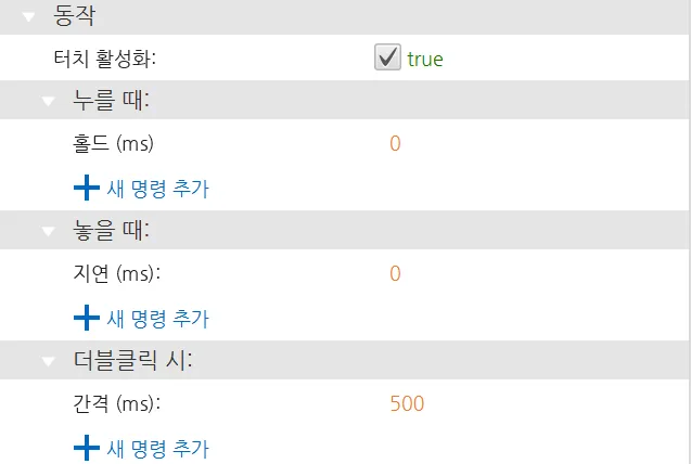 날짜/시간 오브젝트를 누르거나, 떼거나, 두 번 클릭하면 해당 오브젝트는 스크립트 또는 명령을 실행합니다. 이는 동작 탭의 누르기 시, 떼기 시 또는 두 번 클릭 시 섹션에서 제어됩니다.