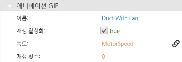 - 심볼 라이브러리 탭으로 이동한 다음 애니메이션 라이브러리로 이동하여 드롭다운 덕트를 마우스 왼쪽 버튼으로 클릭하고 팬이 있는 덕트 오브젝트를 추가합니다. 팬이 있는 덕트 오브젝트를 선택하고 해당 속성 아래에서 속도를 MotorSpeed 태그에 바인딩합니다.