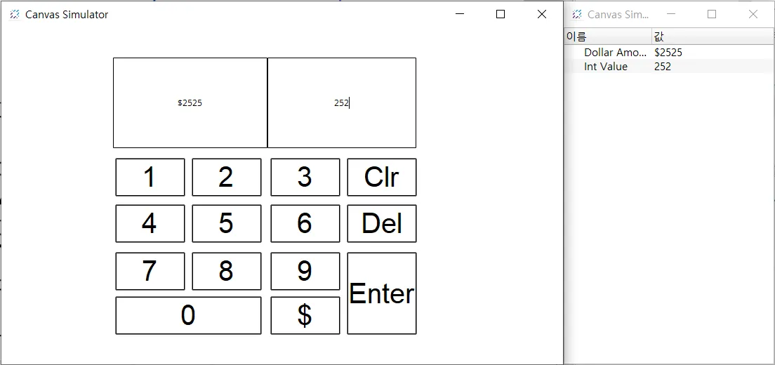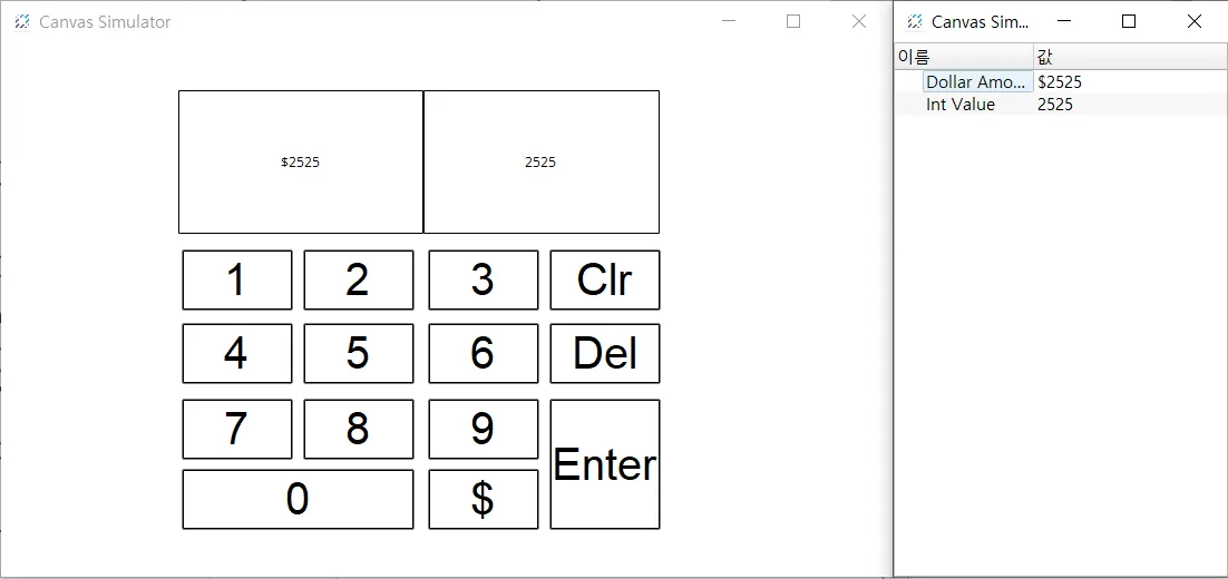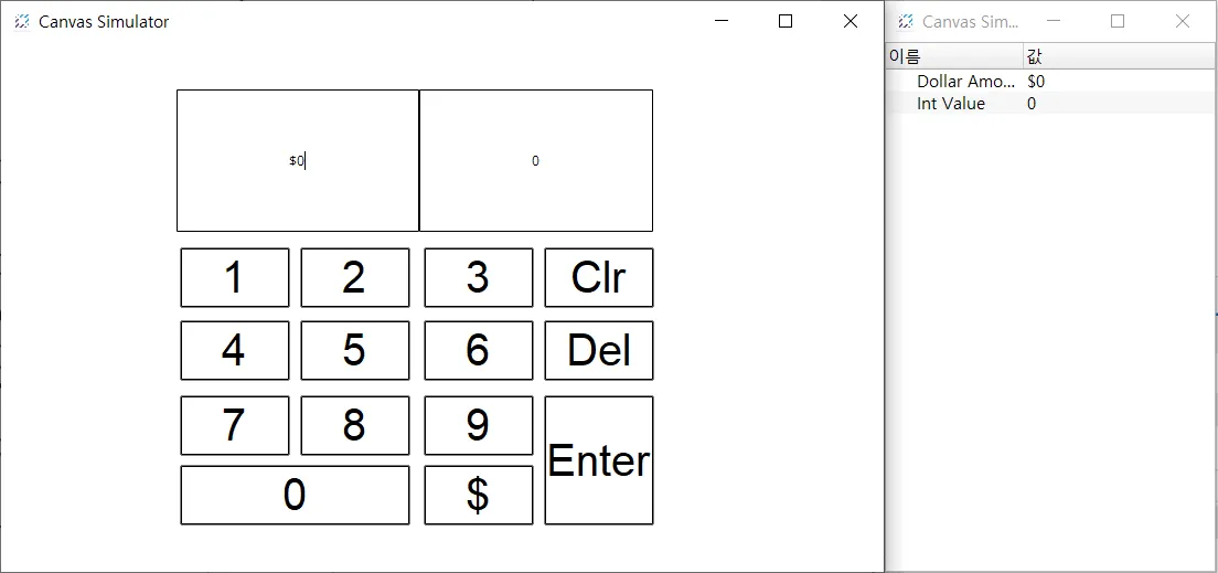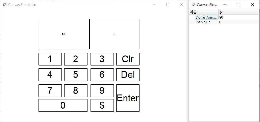 섹션 제목: “프로젝트 실행”- 도구 > 시뮬레이터 실행을 클릭하여 Canvas 시뮬레이터를 실행합니다.