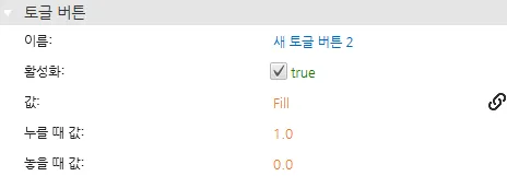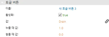- 3개의 토글 버튼을 생성합니다. 첫 번째 버튼에는 ON 태그를, 두 번째에는 Fill 태그를, 세 번째에는 Drain 태그를 연결합니다.