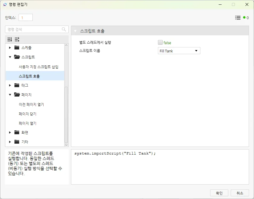 - Fill Tank로 설정하고 확인을 클릭합니다.
