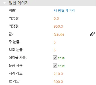 [원형 게이지] – [값] : Gauge 태그 연결