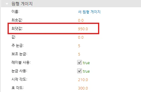 원형 게이지를 선택하고 최대 값을 950 또는 게이지에 표시할 값으로 변경합니다.