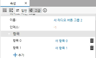 섹션 제목: “라디오 버튼 그룹 속성”일반 속성