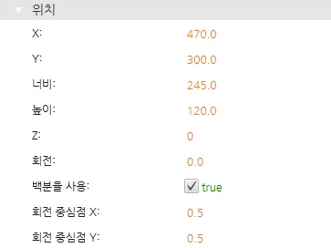 위치 섹션에서는 라디오 버튼 그룹 오브젝트의 크기를 조정하거나 위치를 이동할 수 있는 속성들을 제공합니다.