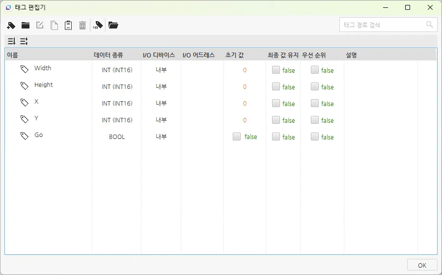 - Go - 데이터 종류: BOOL - 초기값: false