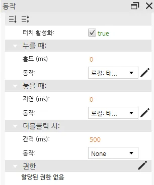 - 왼쪽과 오른쪽 벡터 이미지의 동작 탭으로 이동하여 **누를 때:**와 놓을 때: -> 동작을 선택한 후 새 명령 추가를 선택합니다.