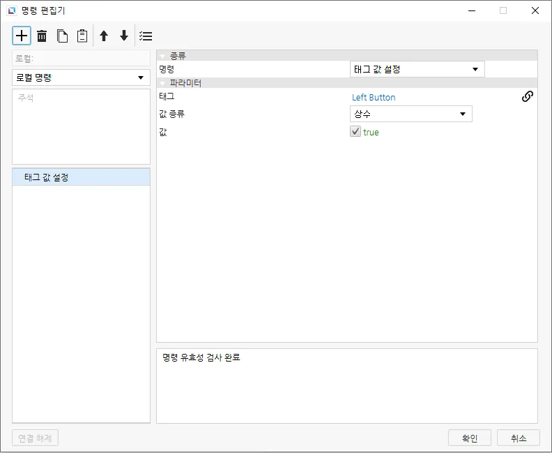 - 왼쪽 벡터 이미지에는 Left Button 태그를 명령에 연결합니다.