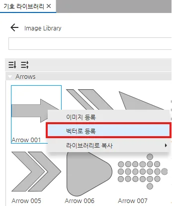 - 벡터 화살표의 경우 리소스 라이브러리 옵션에서 Arrows 검색 후 생성합니다.