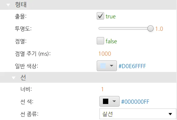 섹션 제목: “스파크라인 형태”스파크라인 형태 설정을 통해 스파크라인의 모양을 사용자 설정할 수 있습니다. 출몰, 투명도, 점멸과 같은 속성을 설정할 수 있으며, 선 설정을 통해 선의 두께와 색상을 설정할 수 있습니다.