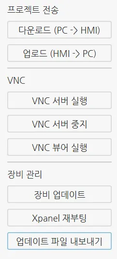 섹션 제목: “프로젝트 다운로드/업로드 설명”Canvas를 사용하면 PC와 HMI 간에 프로젝트를 빠르고 안전하게 업로드 및 다운로드하여 HMI와 원활하게 상호 작용할 수 있습니다. 이러한 기능은 다운로드, 업데이트 및 백업을 간소화하여 HMI 프로젝트를 관리, 편집 및 유지보수하는 효율적인 워크플로우를 제공합니다.