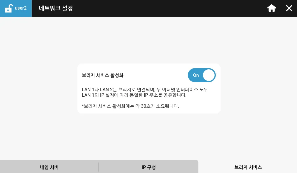 Xpanel에 이더넷 포트가 두 개 있고 브리지 서비스 설정이 활성화되어 있다면 하나의 포트만 설정할 수 있습니다.