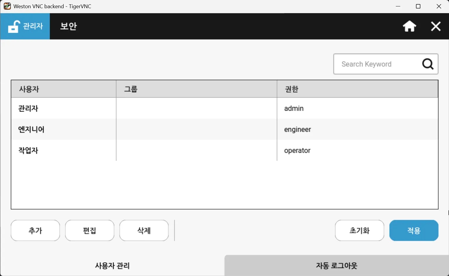 보안 설정을 통해 사용자는 사용자와 계정을 추가, 편집 또는 삭제할 수 있습니다.