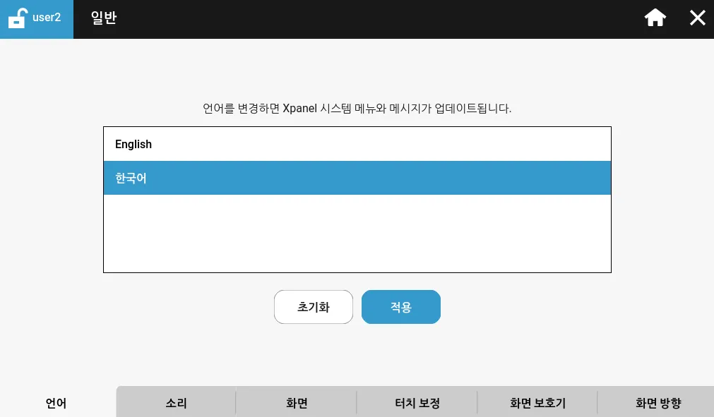일반 메뉴에선 Xpanel의 물리적인 설정을 사용자에 맞게 변경할 수 있습니다.