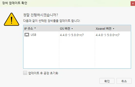 사용자는 원하는 경우 업데이트 후 Xpanel을 공장 초기화 할 수도 있습니다