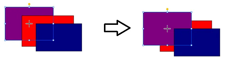 Selected objects are lowered to the highest Z-index of a page, commencing at zero and incrementing by one for each object on a page, placing them behind all other objects. Groups are treated as one object with an internal Z-indexing for only the group. ![]() | |