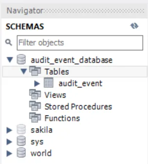 - Save and run the project. Once an event has been generated, you can see the audit_event table inside of your database.