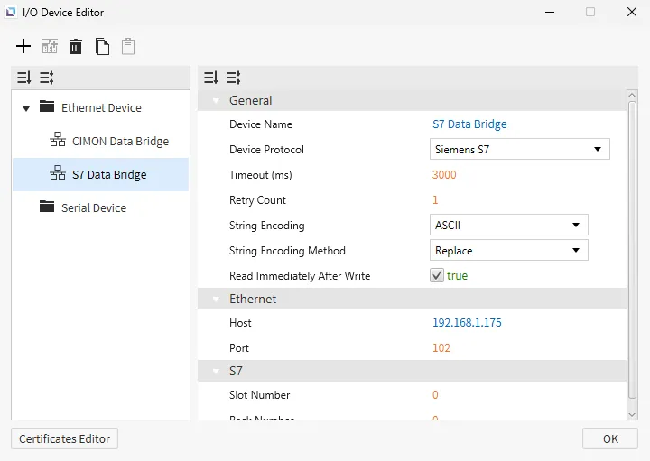 - The CIMON PLC will continue updating every second. However, the S7 PLC will not update until the toggle button is toggled off and on again.