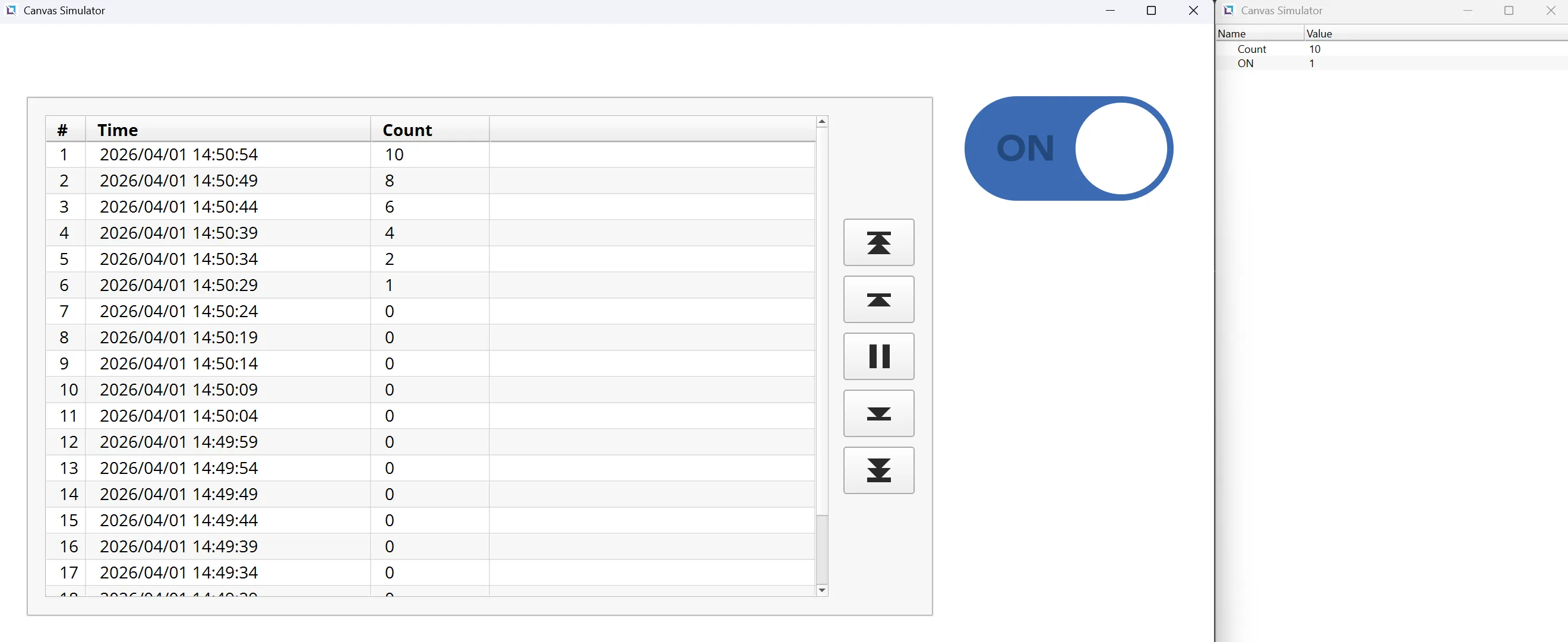 The Count tag will update every 5 seconds when the toggle button turns on.