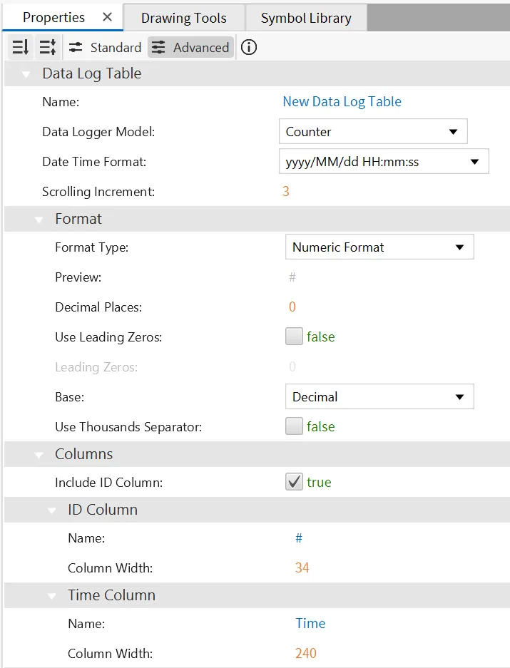Section titled “Data Log Table Configuration”-
